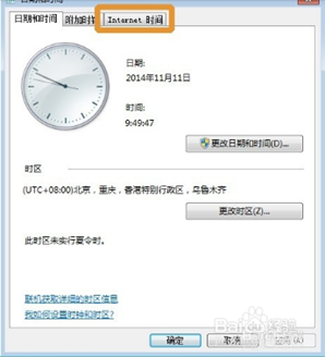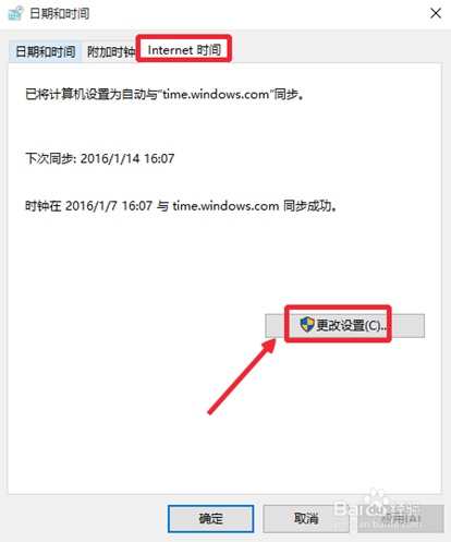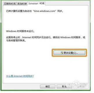 (3)日期和时间中选择internet时间里面的更改设置按钮。