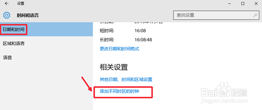 (2)日期和时间窗口中,选择下方这里的添加不同时区的时钟。